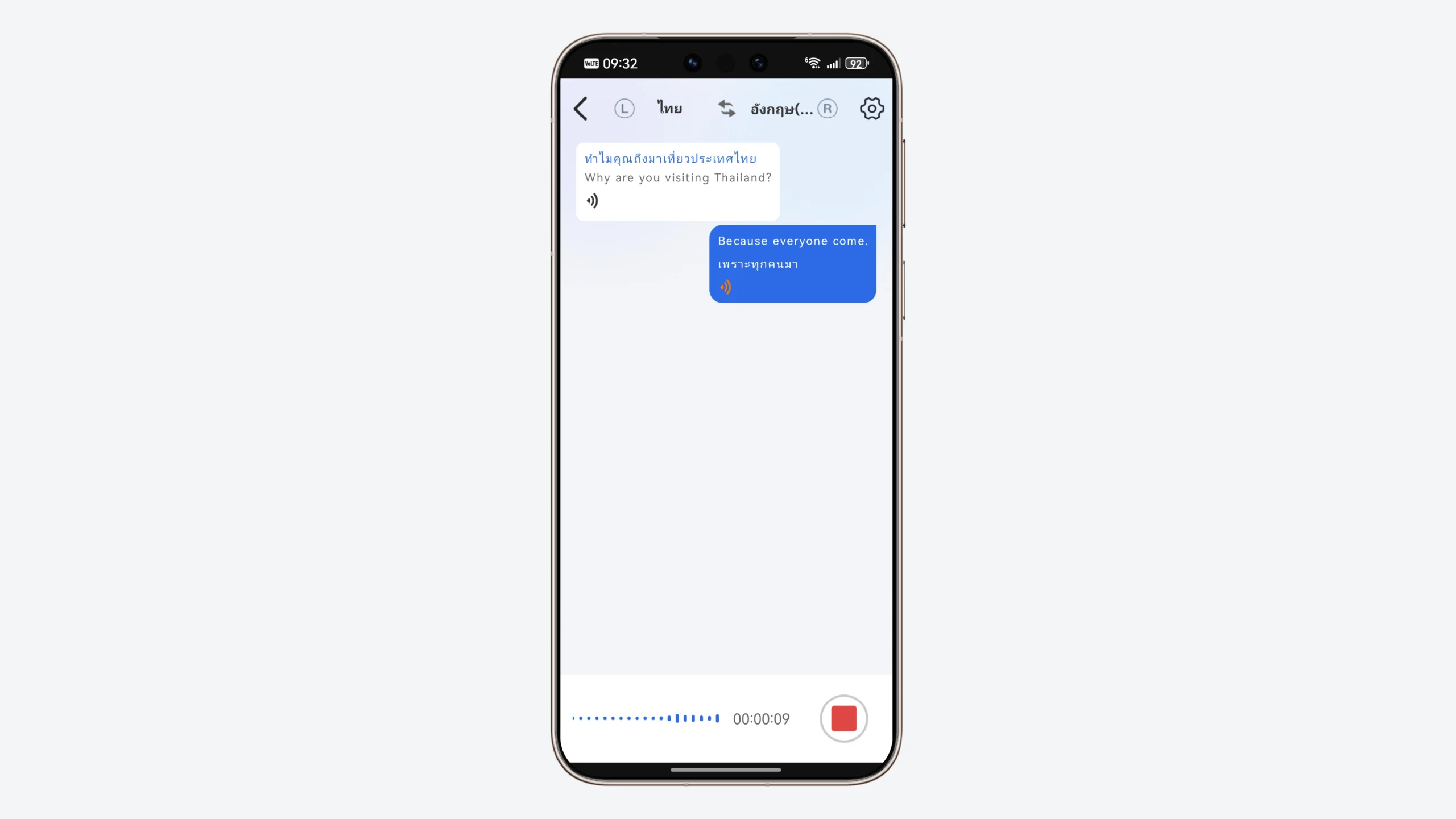 เมื่อตั้งค่าทุกอย่างพร้อมแล้ว ขั้นตอนสุดท้ายเพียงแค่กดปุ่ม "บันทึก" บนหน้าจอแอปพลิเคชัน ระบบจะทำการจับเสียง แปลภาษาออกมาเป็นเสียงเข้าสู่หูฟัง พร้อมทั้งแสดงข้อความ Subtitle บนหน้าจอโทรศัพท์ให้อ่านตามได้แบบเรียลไทม์ ทำให้ไม่พลาดแม้แต่ประโยคเดียว แม้จะอยู่ในสภาพแวดล้อมที่มีเสียงดังรอบข้าง