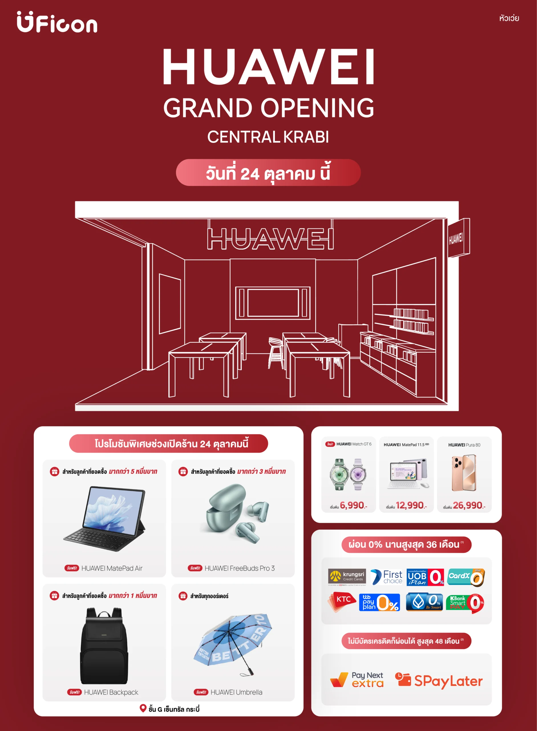 พบกับ HUAWEI สาขาใหม่ที่ Central Krabi พร้อมโปรพิเศษวันเปิดร้าน