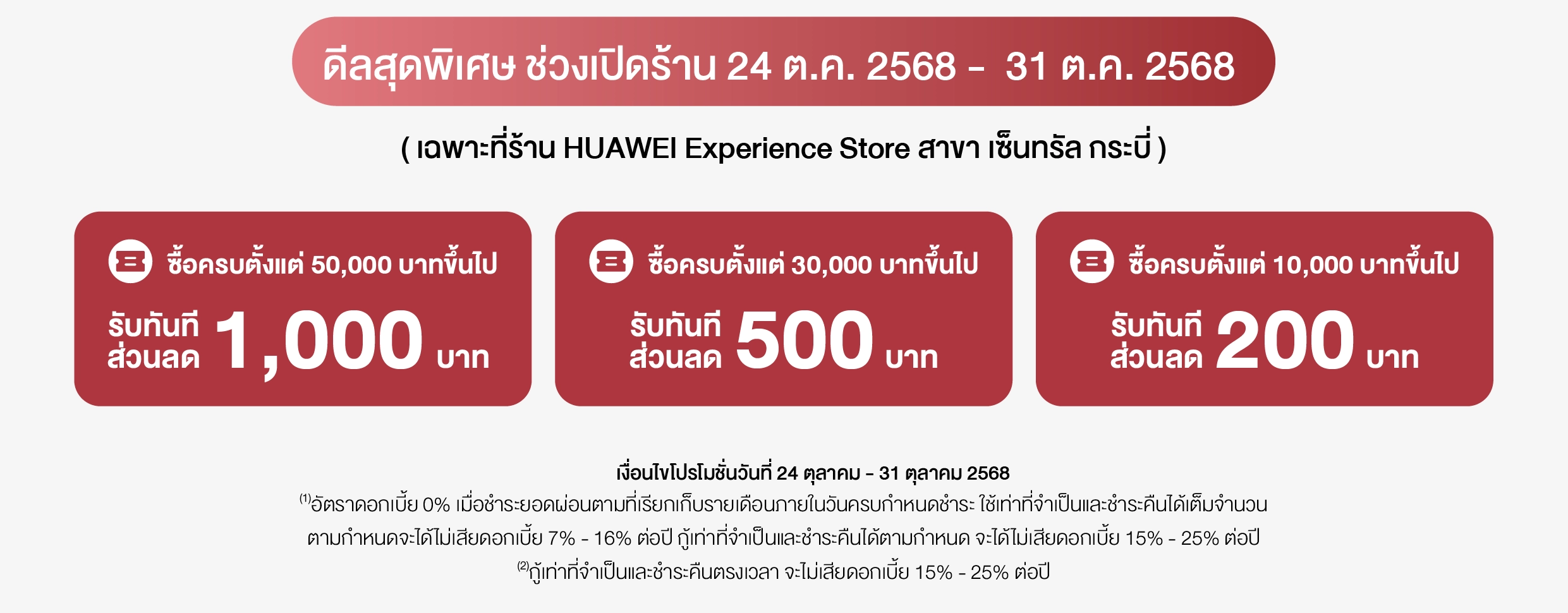 4. โปรโมชั่นนี้ ใช้ได้เฉพาะที่สาขา HUAWEI Authorized Experience Store at Central Krabi by UFicon เท่านั้น