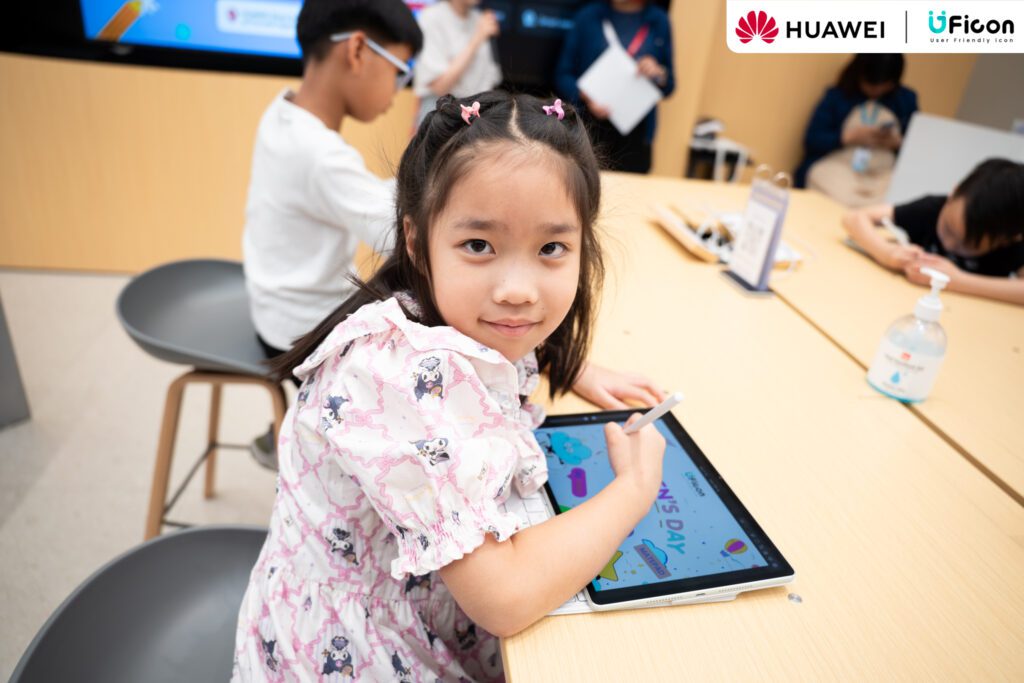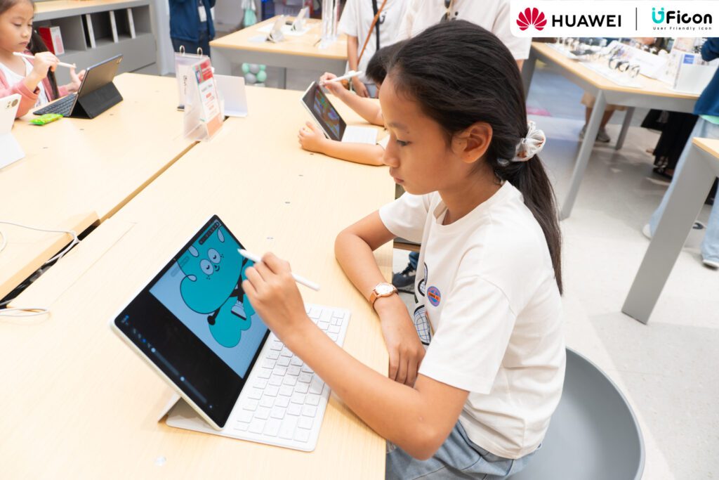 ภายในเวิร์กช็อป น้อง ๆ ได้เรียนรู้การใช้งาน HUAWEI MatePad ร่วมกับปากกาอัจฉริยะ HUAWEI M-Pencil ตั้งแต่พื้นฐานการจับปากกา การลากเส้น การเลือกสี ไปจนถึงการระบายสีและออกแบบผลงานในสไตล์ของตนเอง พร้อมสร้างสรรค์ “ผลงานชิ้นแรก” บนแท็บเล็ตอย่างสนุกสนาน